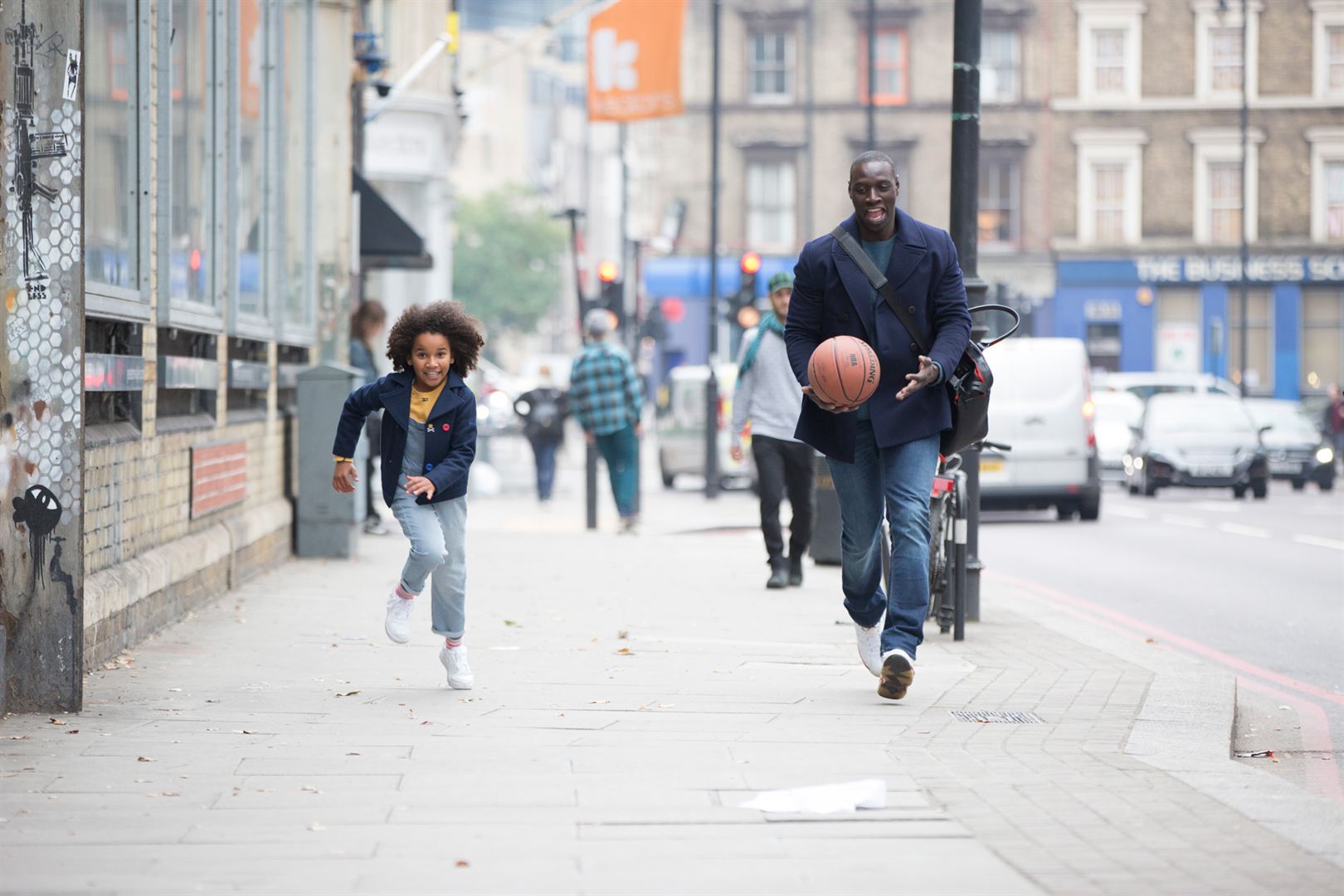 Revelação em Intocáveis, o simpático Omar Sy (na foto com Gloria Colston) interpreta o boa-vida Samuel na comédia dramática Uma Família de Dois. mas o cotidiano do mulherengo, que mora na França, sofre uma reviravolta quando uma inglesa surge com uma bebê que ela diz ser sua filha — e foge em disparada num táxi. Com a ajuda de um conterrâneo, Samuel descola um emprego de dublê em londres e, lá, passa a criar a menina. Bonitinha e ingênua, a história começa com uma pegada de humor familiar. As tintas da tragédia, contudo, surgem aos poucos para comover, forçadamente, o espectador. Estreou em 29/6/2017.