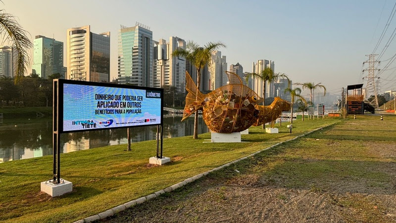 O Lixômetro fica localizado no Parque Bruno Covas e busca conscientizar a população sobre a poluição nos rios da cidade.