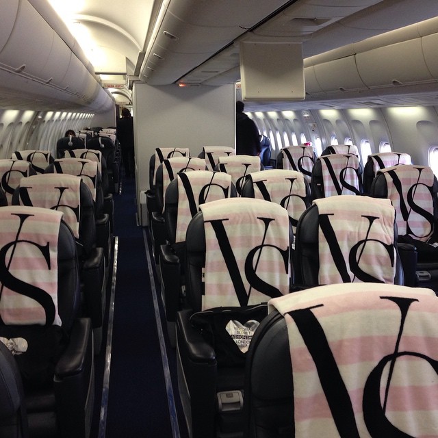 Modelos embarcam em avião exclusivo da Victoria’s Secret