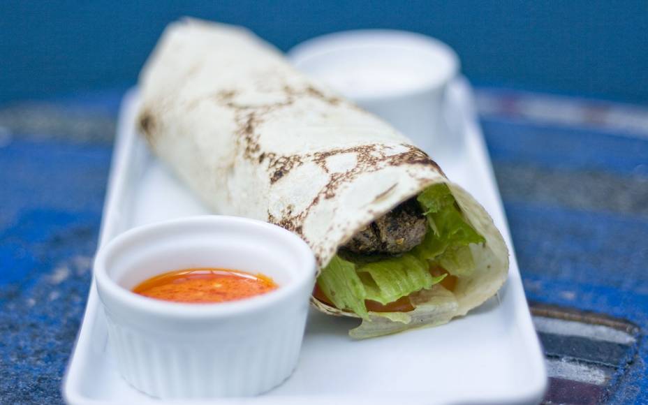 Como indica o nome do estabelecimento, a receita é a sua pedida. Recheada de cafta, alface, tomate, molho tahine, homus, picles e cebola, sai a R$ 22,00.